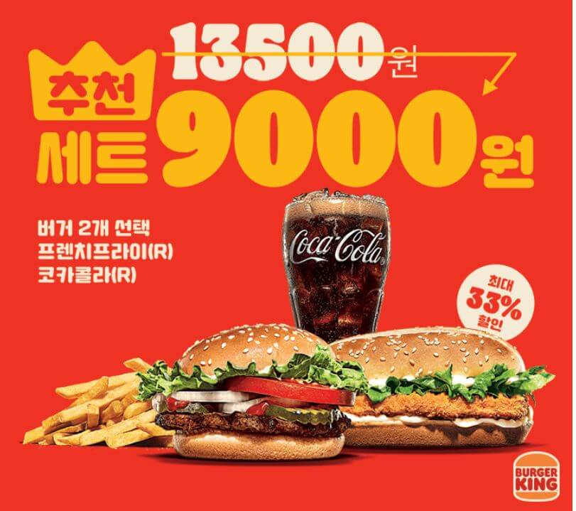 버거킹 다른 9월행사는 추천제품 13,500원 짜리를 9,000원에 드릴 수 있는 기회입니다. 2주동안 진행되는 이벤트이니만큼 기간 잊지 마시고 놓치지 않으시기 바랍니다.