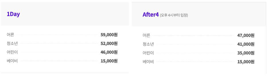 어른 기준으로 본인 34,100원, 동반 3인 우대가 43,400원으로 자유이용권 구매 가능합니다.